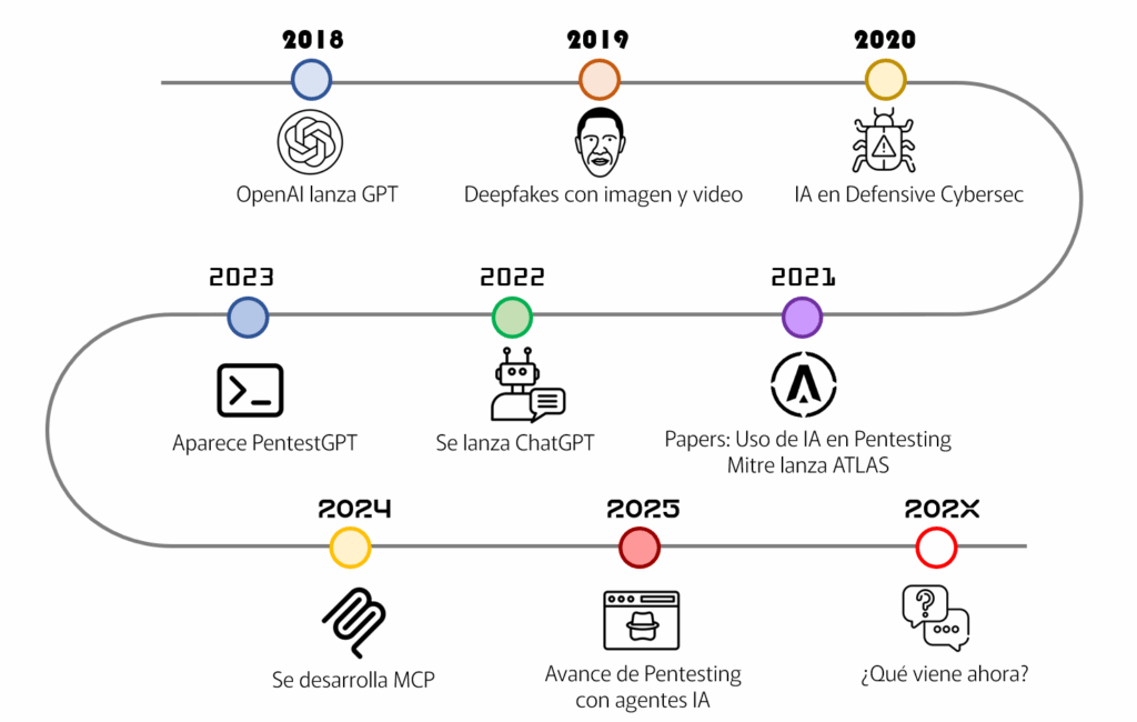 Antes de entrar al mundo de los agentes, es importante contextualizar como han venido convergiendo en los últimos años el mundo de la seguridad ofensiva con el auge de la inteligencia artificial (como la conocemos hoy)